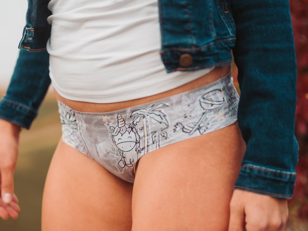 Majtki jsou vyrobeny z recyklovaného polyesteru, vlastní OEKO TEX STANDARD 100 a GLOBAL RECYCLED STANDARD certifikace. Kalhotky jsou tzv. neviditelné, někdo může používat také výraz bezešvé. Jednoduše, nejsou lemované. Netvoří tak otlaky a nevzhledné obrysy pod oblečením. Látka je velmi průžná a na dotek měkoučká. Kalhotky se tak přizpůsobí vaší velikosti a nemusíte se bát, že je rozrthnete. Látka má funkční membránu, která zajišťuje prodyšnost kalhotek a stélka spodního prádla je vyrobena z bavlny, aby nejintimnější partie byly v souladu s přírodou. Na výběr máte ze třech možných střihů. Design je tvořen Katkou Kaplanovou alias VAGA.ART - https://www.instagram.com/vaga.art/.