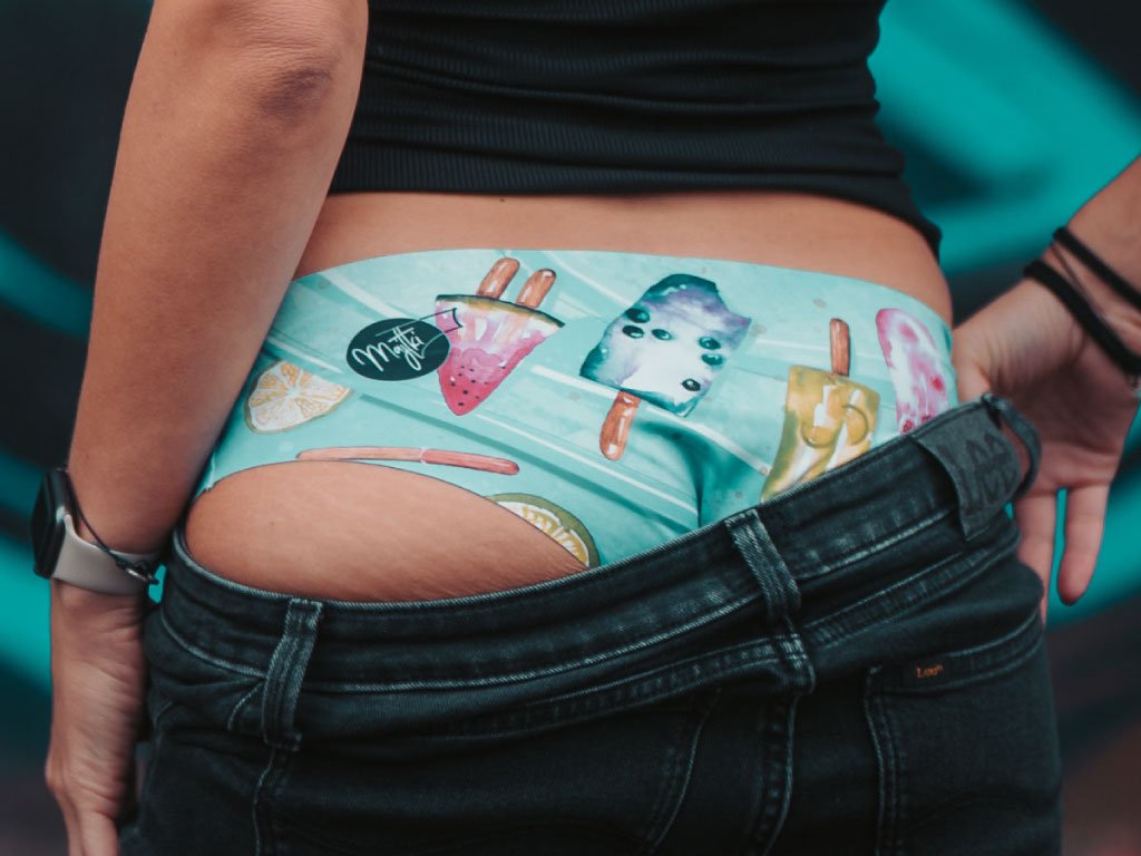 Majtki jsou vyrobeny z recyklovaného polyesteru, vlastní OEKO TEX STANDARD 100 a GLOBAL RECYCLED STANDARD certifikace. Kalhotky jsou tzv. neviditelné, někdo může používat také výraz bezešvé. Jednoduše, nejsou lemované. Netvoří tak otlaky a nevzhledné obrysy pod oblečením. Látka je velmi průžná a na dotek měkoučká. Kalhotky se tak přizpůsobí vaší velikosti a nemusíte se bát, že je rozrthnete. Látka má funkční membránu, která zajišťuje prodyšnost kalhotek a stélka spodního prádla je vyrobena z bavlny, aby nejintimnější partie byly v souladu s přírodou. Na výběr máte ze třech možných střihů. Design je tvořen Katkou Kaplanovou alias VAGA.ART - https://www.instagram.com/vaga.art/.