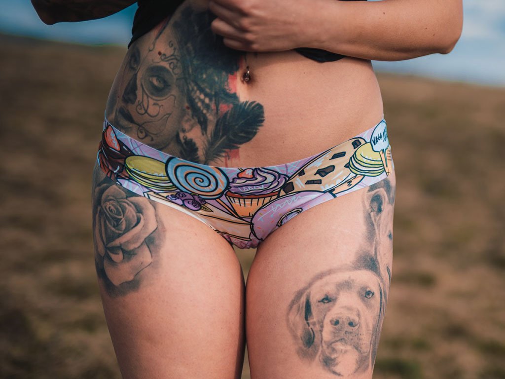Majtki jsou vyrobeny z recyklovaného polyesteru, vlastní OEKO TEX STANDARD 100 a GLOBAL RECYCLED STANDARD certifikace. Kalhotky jsou tzv. neviditelné, někdo může používat také výraz bezešvé. Jednoduše, nejsou lemované. Netvoří tak otlaky a nevzhledné obrysy pod oblečením. Látka je velmi průžná a na dotek měkoučká. Kalhotky se tak přizpůsobí vaší velikosti a nemusíte se bát, že je rozrthnete. Látka má funkční membránu, která zajišťuje prodyšnost kalhotek a stélka spodního prádla je vyrobena z bavlny, aby nejintimnější partie byly v souladu s přírodou. Na výběr máte ze třech možných střihů. Design je tvořen Katkou Kaplanovou alias VAGA.ART - https://www.instagram.com/vaga.art/.
