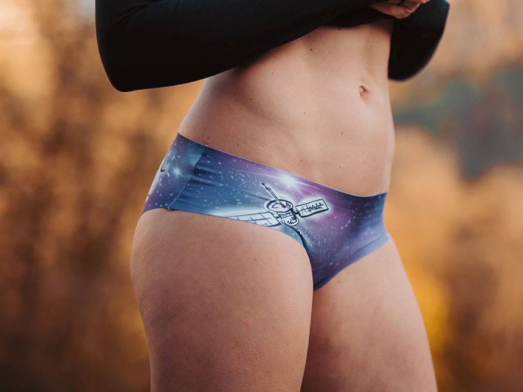 Kus vesmíru na zadku. Proti němu bude vaše pozadí vždy miniaturní, takže chcete-li zvednout sebevědomí, milujete tuto nekonečnou soustavu a nechcete být její součástí pouze vy, ale také ona vás, tak tyhle Majtki potřebujete :) No a kdybyste se náhodou na komerřní cestu chystali (stojí cca 5 milionů), tak piště. Do skafandru vás rádi vybavíme :) design by vaga.art