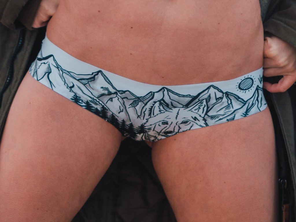 Milovníci přírody, hor, jezer, vyplavených endrofinů při výstupech, sestupech, otlačené paty, puchýře, bolavá lýtka, stehna, červené tváře, pot až za ušima. To jsou ony, majtki, které musíš na vrcholu své cesty mít. Tohle je prostě vlčí láska a tihle vlci potřebují slýchávat: "Ach, ta panoramata!". Vlčí smečko, ty jsou pro vás :) Design by vaga.art.